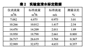 現(xiàn)場試驗(yàn)所用測量管的內(nèi)徑為DN50,通過高壓由壬接入泥漿管線,并串接渦輪流量計(jì)進(jìn)行比較,采用標(biāo)準(zhǔn)計(jì)量罐測試。計(jì)量鉆井泥漿密度范圍為1.15g/cm³~2.50g/cm³,固井設(shè)計(jì)施工現(xiàn)場一次性替漿量為18m³~160m³,替漿瞬時(shí)流量為0.2m³/min~2.8m³/min(流速:1.6~23.8m/s);通過近15口井的施工應(yīng)用,結(jié)果如表1所示。試驗(yàn)表明儀表計(jì)量誤差小于1%;在流速2.0m/s以下,隨著流量的減少測試誤差逐漸提高,在流速1.0m/s左右計(jì)量精度降到3%左右。經(jīng)分析,主要是由零點(diǎn)漂移引起的,這點(diǎn)與實(shí)驗(yàn)室用清水標(biāo)定結(jié)果基本吻合。使用DN50的測量管,實(shí)驗(yàn)室標(biāo)定結(jié)果如表2所示。試驗(yàn)證明,采用雙頻矩形波作為勵(lì)磁信號,可有效地規(guī)避和抑止固井泥漿的流動噪聲和現(xiàn)場震動等所帶來的低頻噪聲,從而顯著提高儀表計(jì)量泥漿的精度。