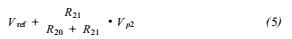 整個電路的工作過程為:當P2.9為高電平時,Q1、Q2、Q3、Q4導(dǎo)通,此時Q5的基極電流為零,Q5截止,此時P2的端口2輸出+24V的電壓。此時P2.8為低電平,Q6、Q7、Q8、Q9,此時有電流流經(jīng)Q10基極,并使其基極和發(fā)射級導(dǎo)通,Q10的功能相當于一個二極管的作用,此時P1端口沒有電壓輸出。那么,A/D轉(zhuǎn)換器的參考輸入端Vref(+)為: