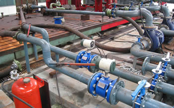 鍋爐軟化水流量計由傳感器和轉(zhuǎn)換器兩部分構(gòu)成。它是基于法拉*電磁感應定律工作的,用來測量電導率大于5μS/cm導電液體的體積流量,是一種測量導電介質(zhì)體積流量的感應式儀表。除可測量一般導電液體的體積流量外,還可用于測量強酸強堿等強腐蝕液體和泥漿、礦漿、紙漿等均勻的液固兩相懸浮液體的體積流量。