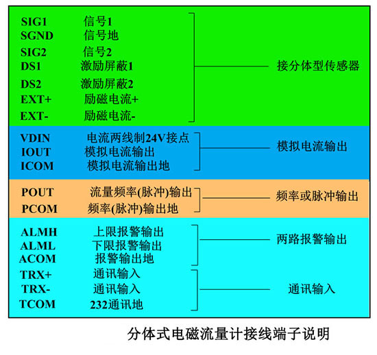 四、污水管網(wǎng)現(xiàn)場(chǎng)收方計(jì)量表轉(zhuǎn)換器接線端子接線圖說明