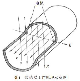 根據(jù)法拉*電磁感應定律,當一導體在磁場中運動而切割磁力線時,在導體兩端便會產(chǎn)生感應電動勢。設在均勻磁場中,垂直于磁場方向有一個直徑為D 的管道。管道由不導磁材料制成,內(nèi)表面加絕緣襯里。當導電的液體在管道中流動時,導電液體就切割磁力線,因而在磁場及流動方向垂直的方向將產(chǎn)生感應電動勢。如果在管道截面垂直于磁場的直徑兩端安裝一對電極, 只要管道內(nèi)流速υ 為軸對稱分布,兩極之間就會產(chǎn)生感應電動勢,此感應電動勢與流速具有線性關系。其表達式為: