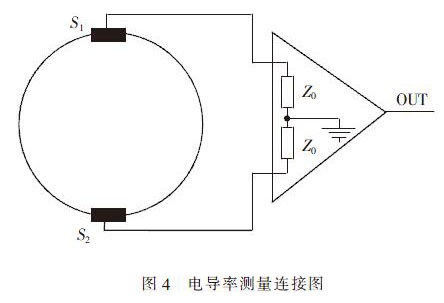 井水流量計(兩電極)傳感器與信號放大器組成如圖4 所示