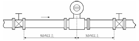 膠水管道流量表的安裝質(zhì)量對(duì)其測(cè)量結(jié)果的影響較大,因此在安裝時(shí)需要注意幾個(gè)問(wèn)題。*先,膠水管道流量表直管段的選擇在配管時(shí)一定要按照要求進(jìn)行選擇,一般選擇流量計(jì)通徑與工藝管道通徑相同,即可滿足工程需要,而且安裝方便、壓力損失小,流量計(jì)直管段上游側(cè)的長(zhǎng)度不少于5倍工藝管道直徑,下游側(cè)的長(zhǎng)度不少于3倍工藝管道直徑(圖2)。但在流速太慢而又要求精度較高或需要變徑的應(yīng)用場(chǎng)合,可選擇通徑小于工藝管道通徑的流量計(jì),以提高測(cè)量精度,此時(shí)流量計(jì)上、下游必須加裝異徑管,且進(jìn)口異徑管上游側(cè)應(yīng)有長(zhǎng)于10倍工藝管道直徑的直管段,下游側(cè)應(yīng)有長(zhǎng)于5倍工藝管道直徑的直管段(圖3)。