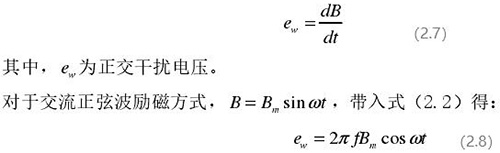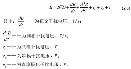 從上圖 2.5 中可以觀察到兩個(gè)電極、勵(lì)磁線圈、轉(zhuǎn)換器內(nèi)阻之間形成了一個(gè)閉合回路,將此回路稱之為初級(jí)繞組,從理論上進(jìn)行分析,磁力線 B 應(yīng)當(dāng)平行于勵(lì)磁線圈所產(chǎn)生的磁感應(yīng)線,但在實(shí)際的應(yīng)用過程中由于工藝差異,因此無(wú)法達(dá)到理想狀態(tài),會(huì)產(chǎn)生磁力線穿過勵(lì)磁線圈磁感應(yīng)線的情況,此時(shí)將會(huì)產(chǎn)生相應(yīng)的感應(yīng)電動(dòng)勢(shì),將此部分感應(yīng)電動(dòng)勢(shì)稱為變壓器效應(yīng)。此效應(yīng)同樣滿足于楞次定律,利用楞次定律進(jìn)行計(jì)算可得如下電動(dòng)勢(shì):