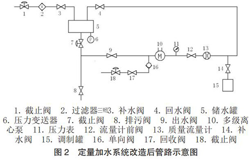 根據(jù)設(shè)計(jì)思路,對(duì)定量加水系統(tǒng)的管路進(jìn)行了改造設(shè)計(jì),改造后管路示意圖如圖 2 所示。
