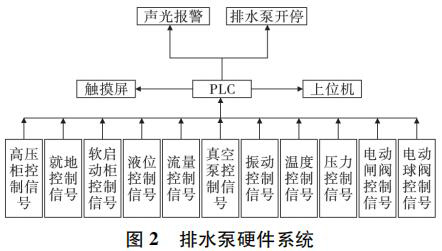 飽和蒸汽流量計自動化運行監(jiān)控系統主要由 PLC、傳感器、交換機、上位機、監(jiān)控系統等組成,從而實現水倉水位、水泵運行等全方位進行監(jiān)控。排水泵硬件系統如圖 2 所示。