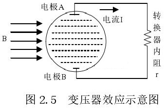 從上圖 2.5 中可以觀察到兩個(gè)電極、勵(lì)磁線(xiàn)圈、轉(zhuǎn)換器內(nèi)阻之間形成了一個(gè)閉合回路,將此回路稱(chēng)之為初級(jí)繞組,從理論上進(jìn)行分析,磁力線(xiàn) B 應(yīng)當(dāng)平行于勵(lì)磁線(xiàn)圈所產(chǎn)生的磁感應(yīng)線(xiàn),但在實(shí)際的應(yīng)用過(guò)程中由于工藝差異,因此無(wú)法達(dá)到理想狀態(tài),會(huì)產(chǎn)生磁力線(xiàn)穿過(guò)勵(lì)磁線(xiàn)圈磁感應(yīng)線(xiàn)的情況,此時(shí)將會(huì)產(chǎn)生相應(yīng)的感應(yīng)電動(dòng)勢(shì),將此部分感應(yīng)電動(dòng)勢(shì)稱(chēng)為變壓器效應(yīng)。此效應(yīng)同樣滿(mǎn)足于楞次定律,利用楞次定律進(jìn)行計(jì)算可得如下電動(dòng)勢(shì):
