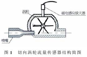 高溫導熱油流量計基本構(gòu)造見圖1。被測流體在流經(jīng)葉輪之前流道會減縮,流速增加,流體經(jīng)過葉輪后葉片旋轉(zhuǎn),磁電傳感器記錄葉片轉(zhuǎn)動頻率,得到被測流體相對應(yīng)的流量。