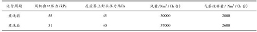 智能型渦街流量計煮洗吹掃后,裝置運行期間無燃爆事故,且裝置運行的風量明顯提高,系統(tǒng)阻力明顯降低,投料量增加?,F(xiàn)將煮洗前后的運行數(shù)據(jù)對比如下: