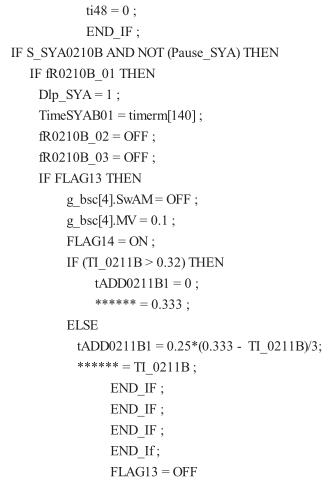 (3)從 80℃升溫到 105℃,用時(shí) 120 min。升溫梯度=(105- 80)/24 = 1.04℃/300 s,蒸汽閥*大開度為 40%。根據(jù)多次生產(chǎn)經(jīng)驗(yàn)總結(jié),進(jìn)入該階段前 60 min,設(shè)定一個(gè)*低閥限 10%,可以避免釜溫波動(dòng)過大;在該階段后期,如果蒸汽閥長(zhǎng)時(shí)間保持較大的開度,就會(huì)造成反應(yīng)結(jié)束時(shí)釜溫沖到 110℃以上,影響二氯乙烷回收品質(zhì),所以在這一步有兩個(gè)特殊限制條件:①當(dāng)釜溫 >100℃,蒸汽閥門開度 >15%且持續(xù)保持 20 min 以上,升溫速率>1.05℃/400 s 時(shí),自動(dòng)關(guān)閉蒸汽閥;②當(dāng)該步進(jìn)行時(shí)間大于 95 min 且蒸汽閥門開度 >16%持續(xù)保持 400 s 時(shí),關(guān)閉蒸汽閥。