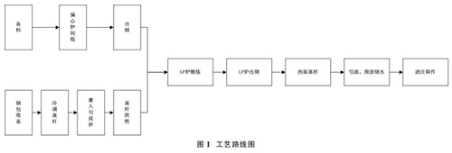 1.1 偏心爐+LF 爐雙聯(lián)冶煉工藝,鋼包冷調(diào)、熱裝防爆渦街流量計(jì)工藝路線圖簡介如圖 1。