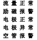 智能化轉(zhuǎn)換器具有自診斷功能,除了電源和硬件電路故障外,一般應(yīng)用中出現(xiàn)的故障均能正確給出報(bào)警信息。這些信息在顯示器右上方提示出“!”驚嘆號(hào)或報(bào)警鐘符號(hào)。在測(cè)量狀態(tài)下,通過(guò)下鍵翻頁(yè),顯示出故障內(nèi)容如下: