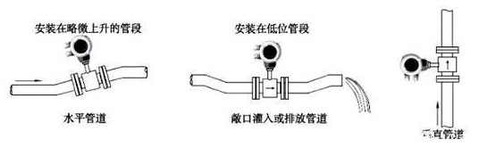 選擇充滿液體的直管段,如管路的垂直段(流向由下向上為宜)或充滿液體的水平管道(整個(gè)管路中*低處為宜),在安裝與測(cè)量過程中,不得出現(xiàn)非滿管情況。