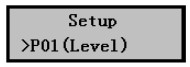 2)按按擊Mode鍵,儀表即可進(jìn)入?yún)?shù)設(shè)置菜單,*先進(jìn)入的就是P01(Level)液位標(biāo)定菜單。