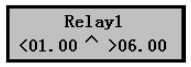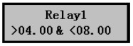 3) 按擊▼鍵可選擇其它繼電器,點(diǎn)OK鍵進(jìn)入繼電器1設(shè)置界面,如右圖,界面中的公式表示繼電器1
