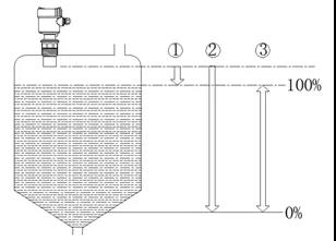 2、換能器發(fā)射面到*高液位之間的距離應(yīng)大于液位計(jì)盲區(qū)(安裝高度>*高液位+盲區(qū))如圖1所示:
