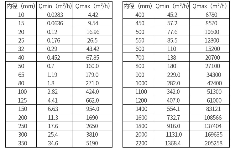 污泥流量計(jì)的流量范圍是比較寬的,一般可以在0.5-10m/s之間選擇。一般情況下,上限流速在原理上是不受限制的,然而通常我們建議不超過 5m/s ,除非襯里材料能承受液流沖刷,實(shí)際應(yīng)用很少超過 7m/s, 超過 10 m/s 則更為罕見。滿度流量的流速下限一般為 1m/s ,有些型號儀表為 0.5m/s。有些新建工程運(yùn)行初期流量偏低或在流速偏低的時(shí)候運(yùn)行,從測量精度角度考慮,儀表管徑應(yīng)改用小的管徑,以異徑管連接之。 用于有粘附、沉積、結(jié)垢等物質(zhì)的流體,選用流速應(yīng)不低于 2m/ s ,*好提高到 3 -4m/s 或以上,起到自清掃 防止粘附沉積等作用。用于礦漿等磨耗性強(qiáng)的流體,常用流速應(yīng)低于 2~3m/s, 以降低對襯里和電極的磨損。在測量接近閾值的低電導(dǎo)率液體,盡可能選定較低流速(小于 0.5~1m/s ) , 因?yàn)榱魉偬岣?,流?dòng)噪聲會增加,而出現(xiàn)輸出晃動(dòng)現(xiàn)象。
