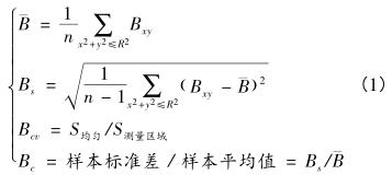 為了詳細(xì)的獲得井水流量計(jì)勵(lì)磁線圈及T型磁芯變化對(duì)流量計(jì)測(cè)量區(qū)域內(nèi)部磁場(chǎng)強(qiáng)度分布的影響情況,引入樣本平均值、樣本標(biāo)準(zhǔn)差、變異系數(shù)、磁場(chǎng)均勻度、感應(yīng)電勢(shì)值等磁場(chǎng)評(píng)價(jià)指標(biāo)分析傳感器勵(lì)磁線圈不同軸向長(zhǎng)度時(shí)測(cè)量區(qū)域內(nèi)部磁場(chǎng)分布情況,如式(1)所示。式中,B為樣本平均值;B s為樣本標(biāo)準(zhǔn)差;B cv為樣本磁場(chǎng)均勻度;B c為樣本變異系數(shù)。在這4個(gè)磁場(chǎng)評(píng)價(jià)指標(biāo)中,樣本平均值越大越好,樣本標(biāo)準(zhǔn)差越小越好,磁場(chǎng)均勻度越大越好,變異系數(shù)越小越好。