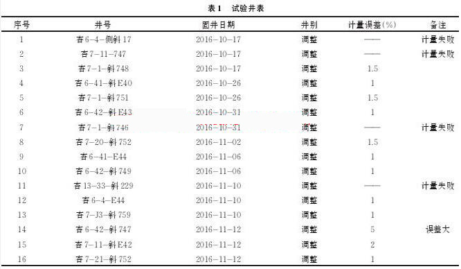 通過現(xiàn)場多口井試驗,試驗井如表1所示。污水流量計可以較為準(zhǔn)確地計量水泥車上水總量,防止替空、留水泥塞事故的發(fā)生。